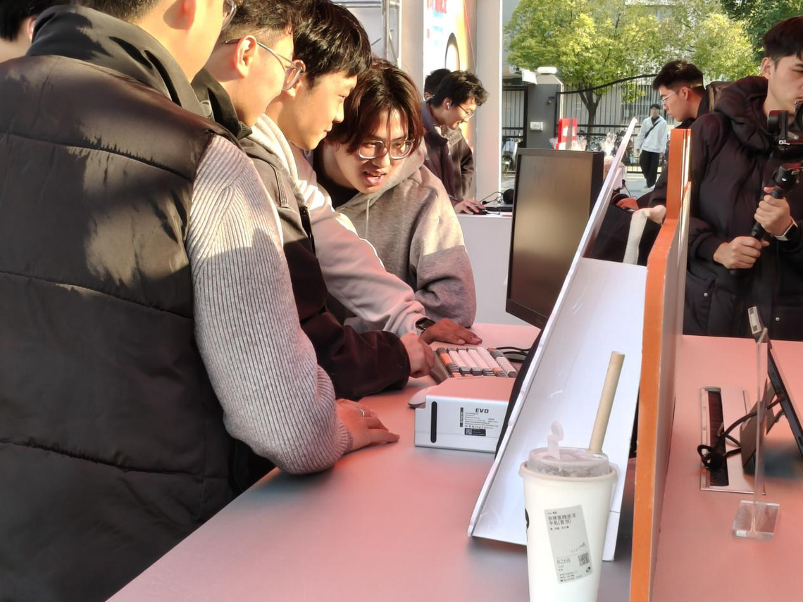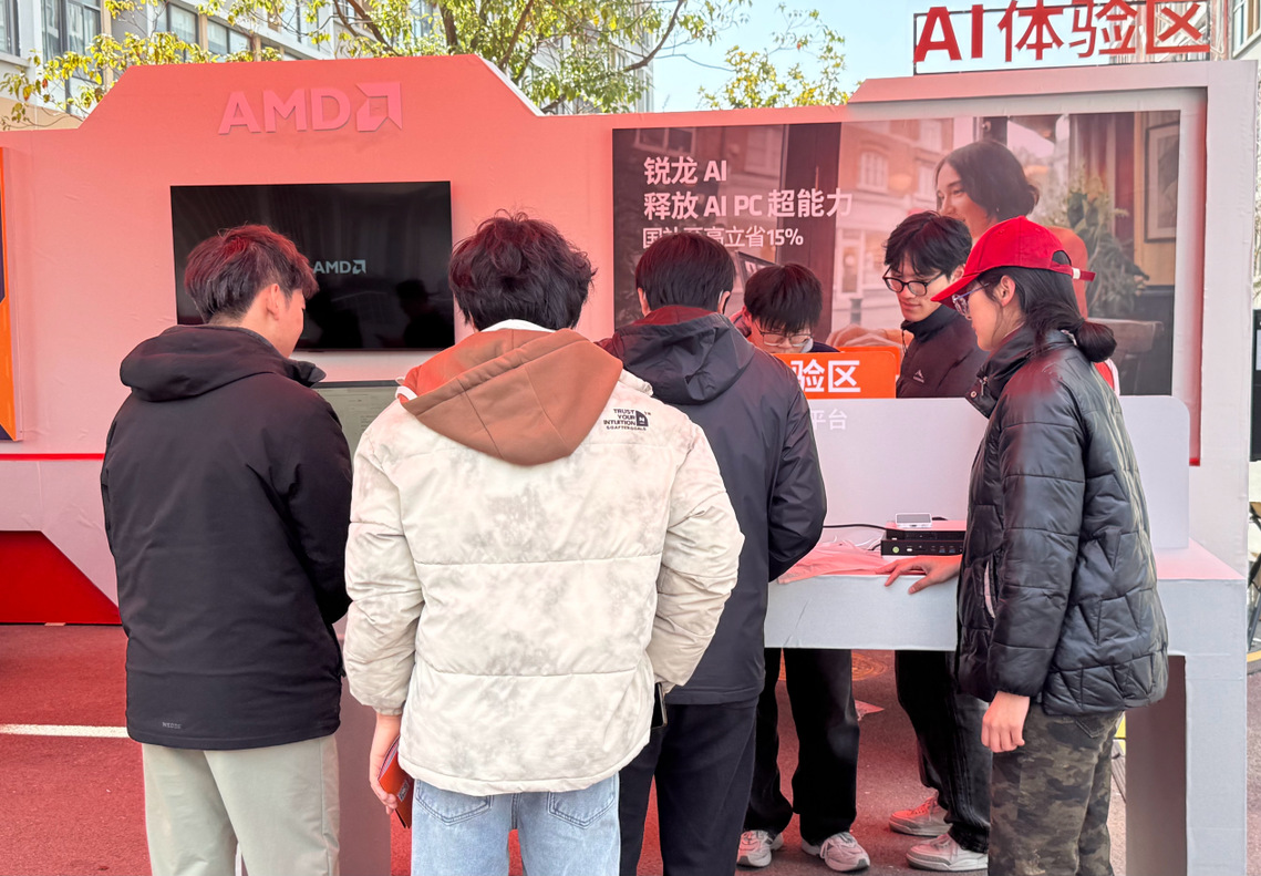 AI体验区内,同学们开展了丰富的数智交互实践:在AI PC体验区,大家从零开始搭建AI智能体,体验AI技术释放的强劲算力;亲手操作Amuse绘画生成专属艺术作品,体验AI PPT工具一键生成专业演示文稿的高效便捷;在智能硬件与3D创作体验区,同学们直观感受高性能硬件对数字创作的有力支撑。