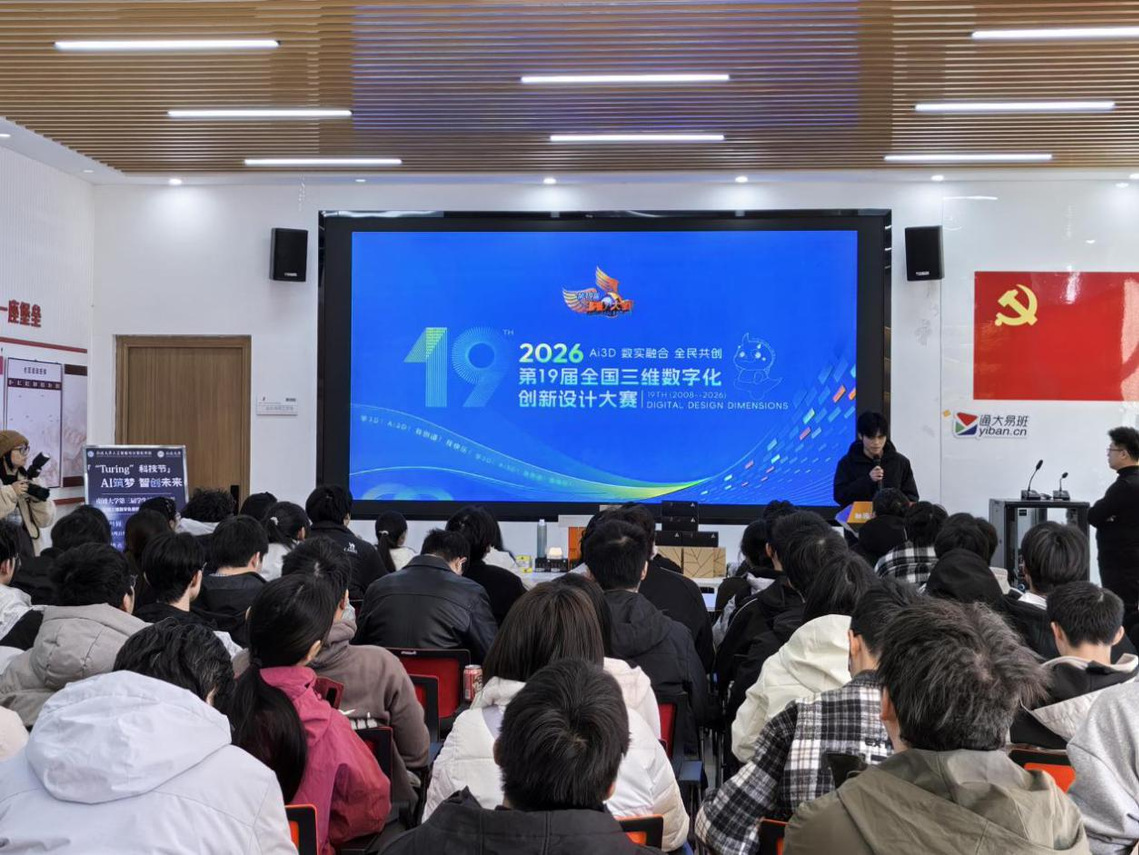 为激发大学生创新热情,推动数字科技的发展与应用,3月21日,英国365公司社区文化节|“Turing”科技节暨全国三维数字化创新设计大赛成果展示活动在“融园”一站式学生社区顺利举办。本次活动以“AI筑梦·智创未来”为主题,融合技术讲座、AI体验、成果展示等多元形式,让青年学子在沉浸式互动中感知人工智能与3D设计的创新魅力,厚植科创精神。人工智能(科大讯飞班)全体24级、25 级同学参与此次活动。